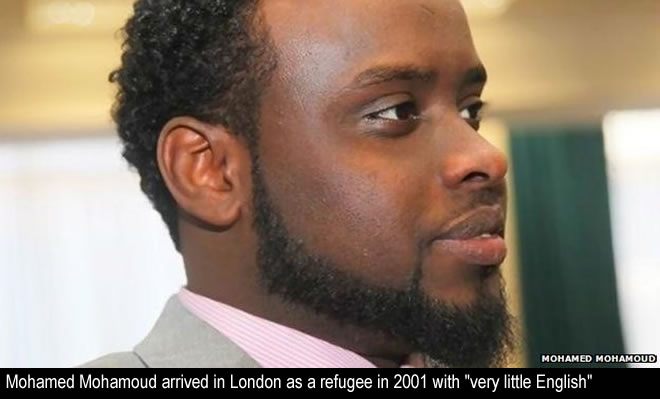 He left Mogadishu in 2001, when he was 17, and arrived alone in London with "very little English".