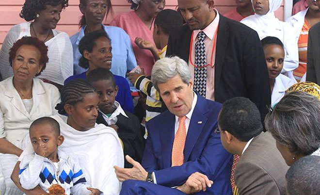 REUTERS/Tiksa Negeri - Secretary of State John Kerry meeting nurses and workers during a visit to the Gandhi Memorial Hospital in Addis Ababa, Ethiopia on May 1.