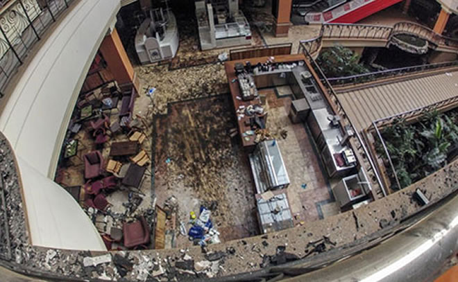 An aerial view dated on September 30, 2013 shows inside the Westgate Mall in Nairobi after the deadly assault by armed terrorists