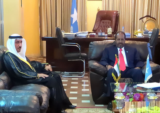 MOGADISHU: President Hassan Sheikh Mohamud of the Federal Republic of Somalia has received Mohammed Ahmed Al Osman, UAE Ambassador to Somalia, at the Office of the President.