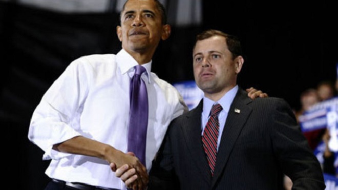 Barack Obama shakes hands with Thomas Perriello (Photo/AFP).