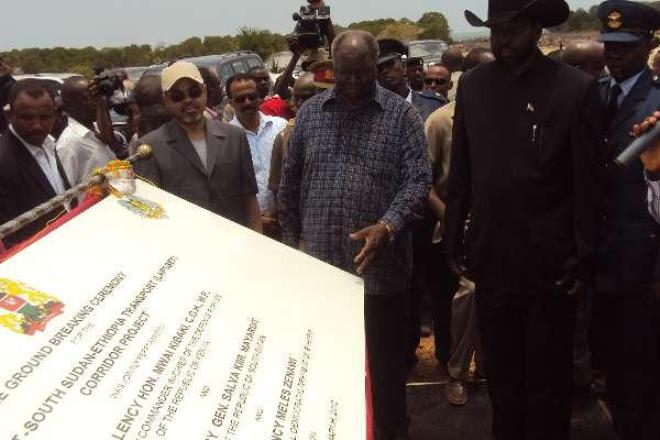 Ethiopian Prime Minister Meles Zenawi, President Mwai Kibaki and South Sudan?s President Salva Kiir during the launch of the Lapsset project in Lamu on March 2, 2012. Below, a map showing Djibouti and Ethiopia?s capital Addis Ababa.