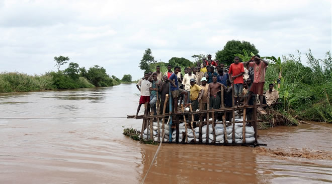 Farmers have erected bags of sands around their farms as the river’s water started to percolate the banks, threatening large areas of farming near the river which has burst its banks before and destroyed large croplands and livestock.