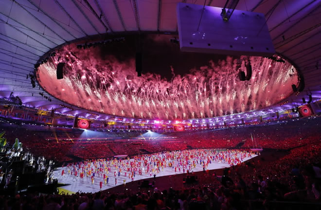 A version of this article appears in print on August 6, 2016, on page A1 of the New York edition with the headline: World Begins Gilded Games In Gritty Rio.