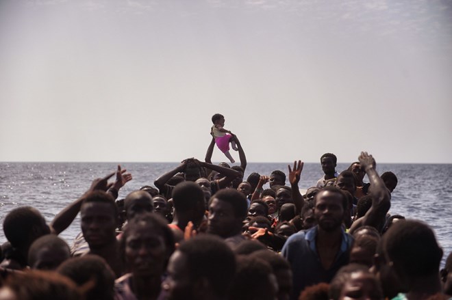 Migrants wait to be rescued in the Mediterranean Sea off the coast of Libya, on October 4, 2016. (AFP/Archive)