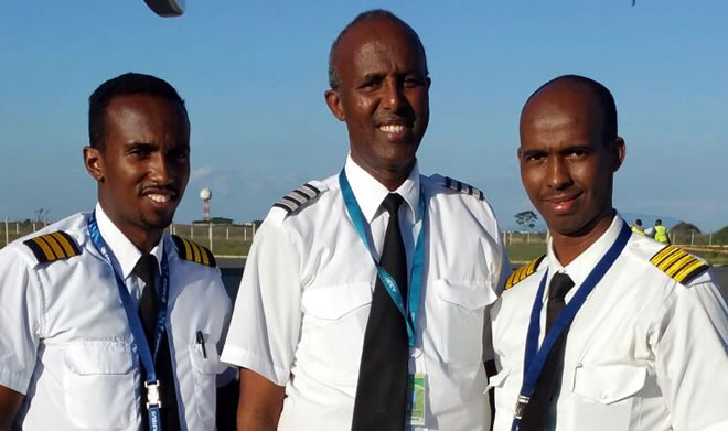 From left: First Officer Ahmed Awale, Eng. Kamil Abdiaziz Olol and Capt. Idris Hussein