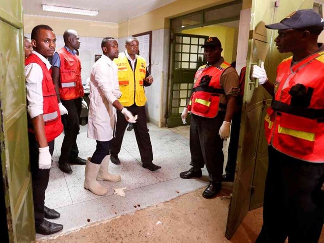 Mortuary attendants and Kenya Red Cross staff prepare to receive the bodies of those killed during the terrorist attack at the Bisharo guest house in Mandera /REUTERS