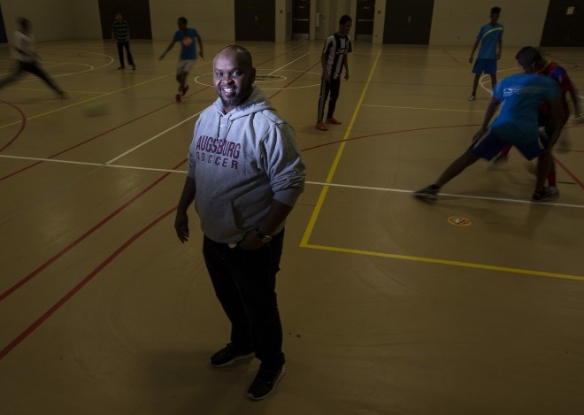 Many of those who come to play are sitting in the bleachers, too. With inadequate funding to rent facilities elsewhere, Ismail, a father of three who drives in from suburban Savage most days, has a partitioned half of the community center’s dated gym for his athletes. That forces him to play the youths in shifts so that each of the 40-plus Somali-American teen boys at this day’s practice gets a turn.