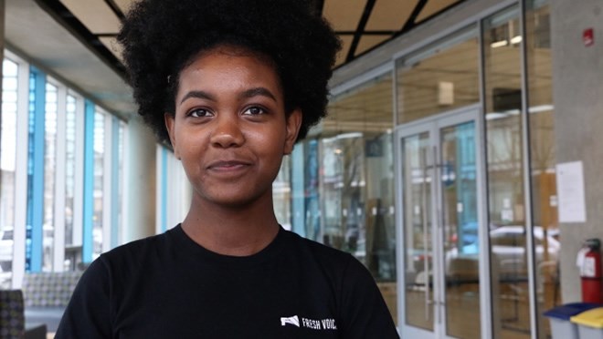 Hana Woldeyes, 19, immigrated with her two older brothers from Ethiopia in 2013. "It was awesome having [Minister Ahmed] here and then looking up to him in general," she said. (Rafferty Baker/CBC)