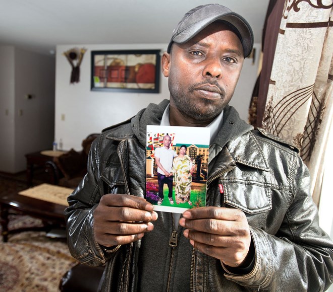 The Somali refugee pulls out his cellphone and scrolls through pictures, then holds out his phone to show off one of which he's especially fond. In it, four of his seven children, dressed in their best clothes, stand smiling outside the U.S. Embassy in Kampala, Uganda.