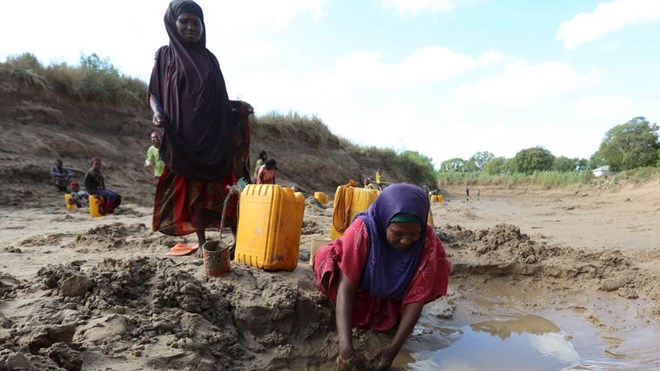 After the back-to-back failed rains, Somalia has been hit with severe water shortages, and many families are forced to buy water from trucks. Some regions of the country have endured the driest year in three decades. The price of a 200-litre barrel of water has tripled, while cereal production has dropped by 75 per cent and three-quarters of Somalia’s livestock has died, according to a report by Save the Children.