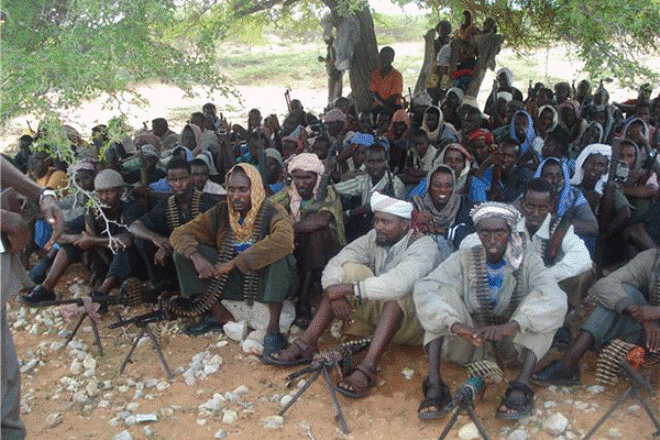 Fighters allied to Ahlu Sunna wal-Jamea, a Sufi militia, take rest in this undated photo in Herale. PHOTO | ABDULKADIR KHALIF | NATION MEDIA GROUP
