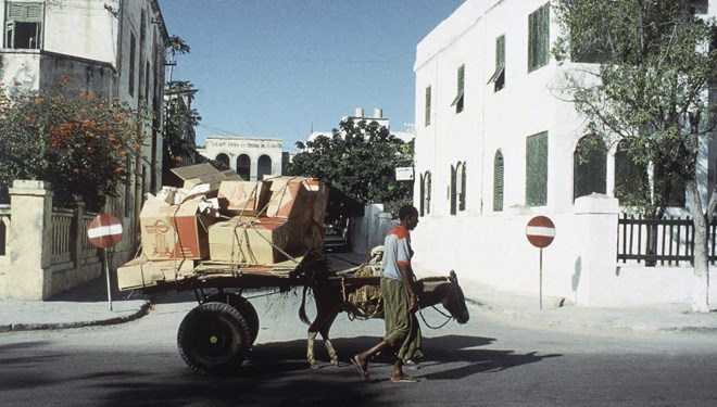 A donkey is used to pull a cart in Mogadishu, capital of the Somali Democratic Republic in April 1985. Photo credit: Pirkko Tanttu/AP