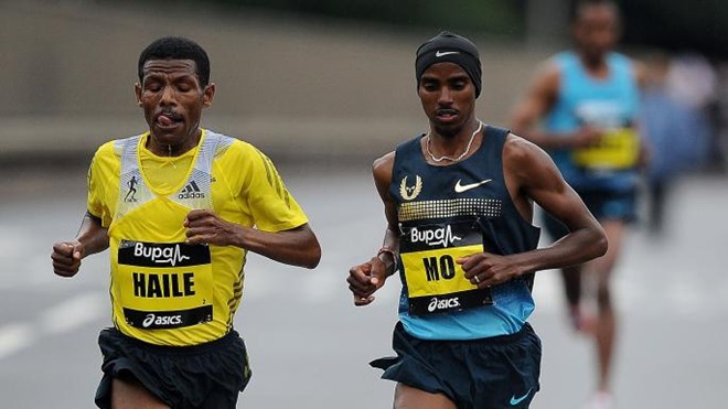 Haile Gebrselassie and Mo Farah go head-to-head at Gateshead in the Great North Run in 2013NIGEL RODDIS/GETTY IMAGES