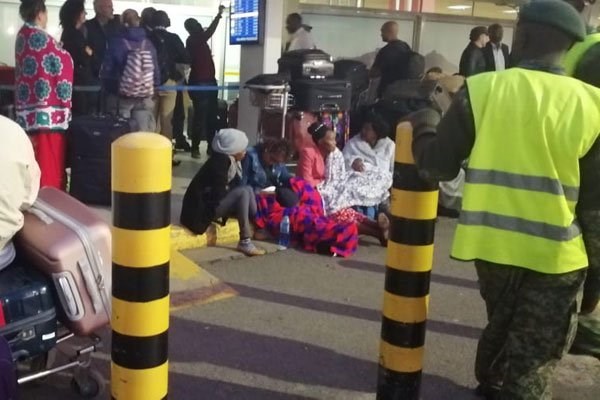 Some passengers spent the night at the airport after their flights were disputed on March 6, 2019. PHOTO | COURTESY