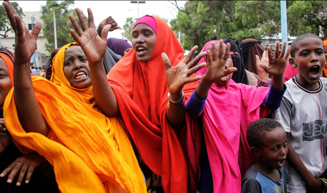 MOGADISHU (HOL) - Protests erupted Saturday in Mogadishu following the killing of two civilians Friday night by police officers.