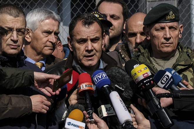Greek Defence Minister Nikos Panagiotopoulos takes questions from reporters after touring the Greek-Turkish border in Kastanies on March 1, 2020 in Kastanies, Turkey [Byron Smith / Getty Images]