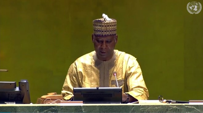 Results of the Non-Permanent Members of the Security Council Elections 2020, seat to be filled by the African States - General Assembly Announcement by the current Tijjani Muhammad-Bande, President of the General Assembly. Screengrab VIA UN WebTV