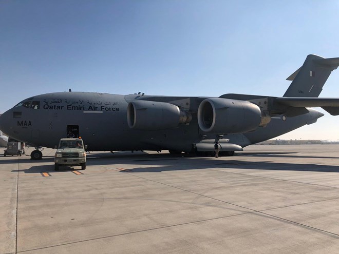 The plane was transporting masks, gloves and PPE kits arrived in a Qatari Air Force plane.