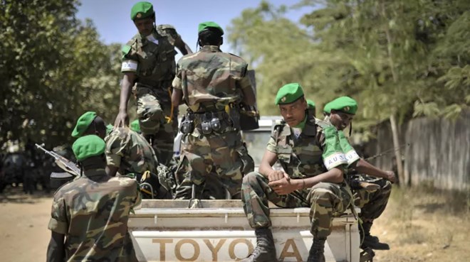 TOBIN JONES, AU UN IST, AFP | In this handout pictured released by the African Union-United Nations Information Support Team, Ethopian soldiers, wearing their new African Union berets, ready themselves for departure after a ceremony in Somalia
