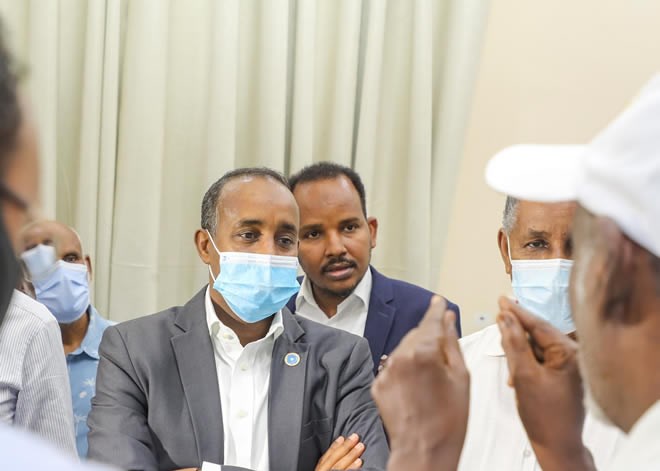 PM Mohamed Hussein Roble meets with civil society leaders on Monday to discuss the conflict. TWITTER/ Credit: Office of PM
