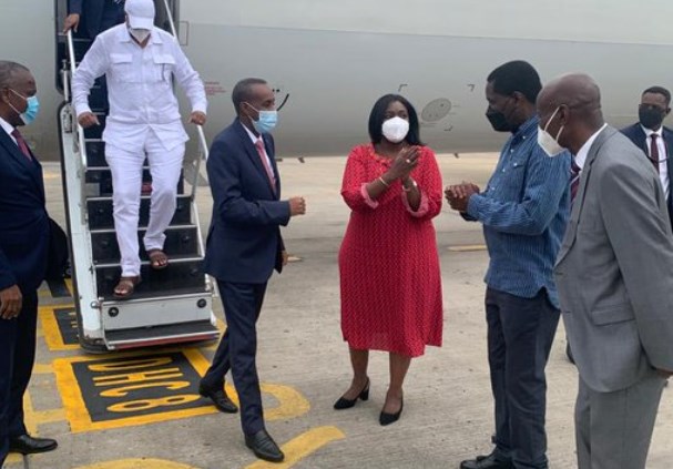 Hussein Roble was received on arrival at Jomo Kenyatta International Airport by Foreign Affairs CS Ambassador Raychelle Omamo.