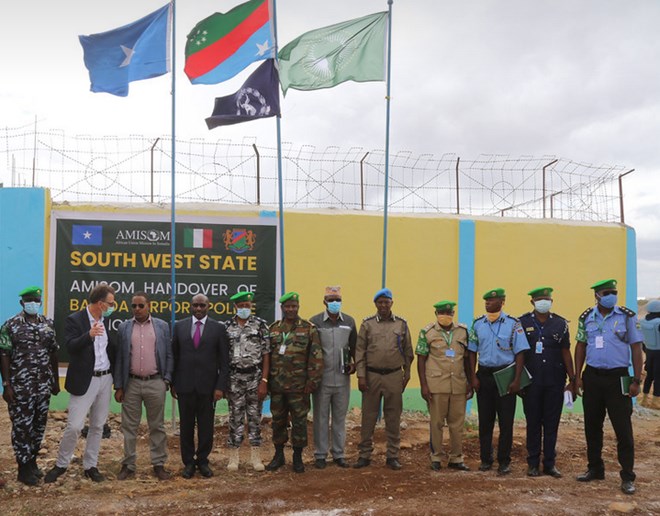 The African Union Mission in Somalia, AMISOM, has handed over a new police station constructed to bolster security at Shati Gaduud Airport Baidoa, in the Southwest State of Somalia.