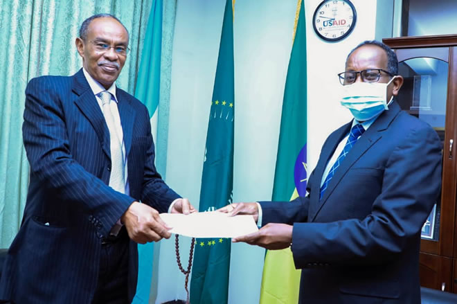 Mogadishu (HOL) - Ethiopian President Sahle Work Zewde has received credentials from the newly appointed Somali Ambassador to Ethiopia Abdullahi Ahmed Jama Ilka-Jiir.
