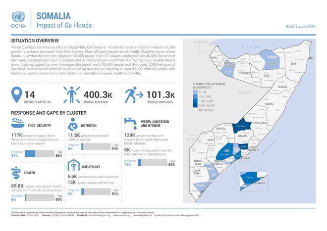According to the UN, while the raining has eased in some areas, humanitarian partners are alarmed that Somalia has been hit by a double climate disaster, with drought-declared on April 25 and heavy rains causing riverine and flash flooding.