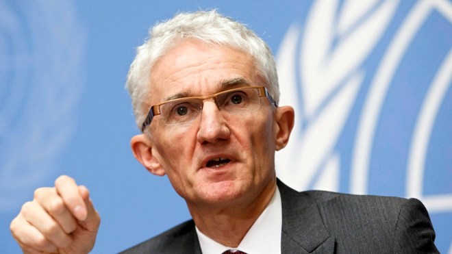 Mark Lowcock, UN Under-Secretary-General for Humanitarian Affairs and Emergency Relief Coordinator, speaks during a press conference at the European headquarters of the United Nations in Geneva, Switzerland on December 4, 2018. THE CANADIAN PRESS/AP, Keystone - Salvatore Di Nolfi
