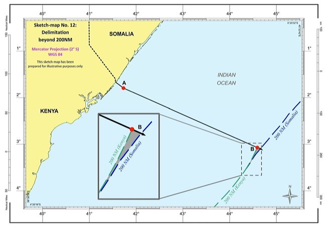 The 100,000-square-kilometer offshore area has been the center maritime territorial dispute between the two neighboring countries since 2014. The dispute stems from a disagreement over boundary demarcation over the triangular patch of ocean, which Kenya claims was in 1979 created by a boundary line running east in a straight line parallel to the Equator from the country’s coastal border with Somalia. However, Somalia insists the boundary of the disputed area should be demarcated by a line running southeast of its land border.