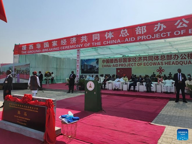 ABUJA, Dec. 4 (Xinhua) -- The China-aided construction of the permanent headquarters of the Economic Community of West African States (ECOWAS) began on Sunday in Nigeria's capital, Abuja, to consolidate the regional bloc's operations in one complex -- a departure from operating at three different locations in Abuja.