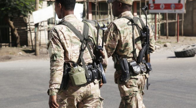 Three aid workers in Axum and Shire said they saw several trucks and dozens of cars packed with Eritrean soldiers on Thursday leaving towards the border town of Sheraro. One of the aid workers said the soldiers were waving goodbye.