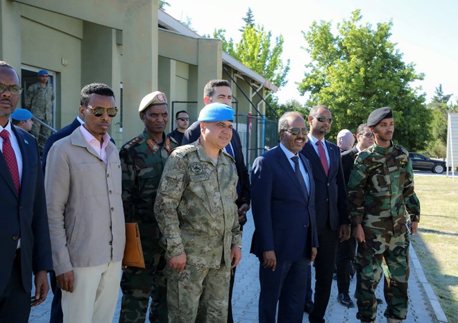 The President was welcomed by officials from the Ministry of Defense and Turkish Armed Forces and thanked them for their essential role in rebuilding the Somali army.