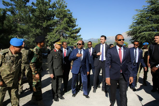 Mogadishu (HOL) - Somali President Hassan Sheikh Mohamud visited the commando training center in Isparta, Turkey, on Tuesday, where Somali soldiers received training under an army cooperation pact between the two countries.