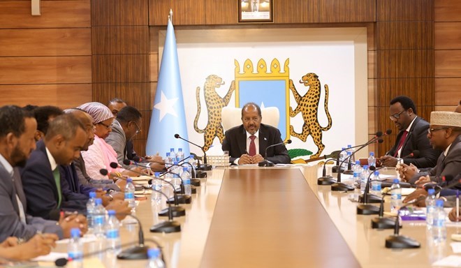 Mogadishu (HOL) - Somali President Hassan Sheikh Mahmoud, together with Prime Minister, Hamsa Abdi Barre, chaired the weekly meeting of the Council of Ministers on Thursday.