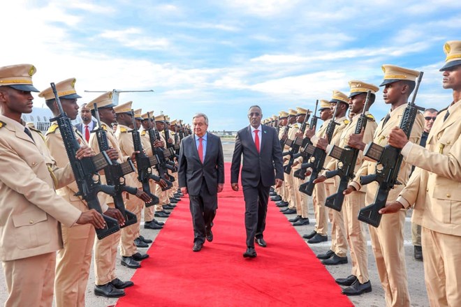 Pictures on social media showed Guterres being given a red carpet welcome at the capital city's airport by Somalia's Foreign Minister Abshir Omar Huruse and other leaders.