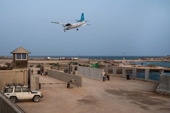 A commercial plane flying over the security zone in Mogadishu. Evens the concrete walls can’t keep all of the violence at bay.