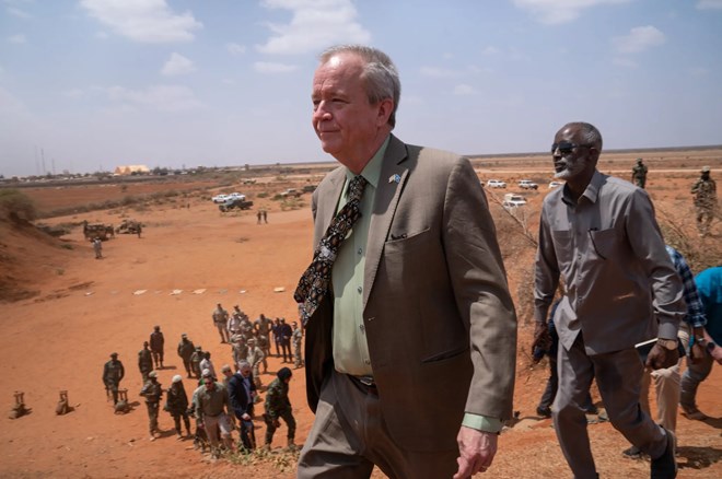Larry E. André Jr., the U.S. ambassador, has made periodic visits elsewhere around the country, including to the graduation ceremony, but is barred from entering Mogadishu.