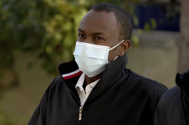 Mohamad Hanad Abdi from Somalia arrives at a court in Mytilene, on the northeastern Aegean island of Lesbos, Greece, Monday, Jan. 9, 2023. The Somali migrant serving life in prison for people smuggling appeared in court Monday to appeal his sentence, in a case backed by a group of European Parliament members who say he was wrongfully convicted. Mohamad Hanad Abdi was sentenced to 142 years in prison in 2021, convicted following a deadly crossing in a dinghy from Turkey to the nearby Greek island of Lesbos the previous year. (AP Photo/Panagiotis Balaskas)