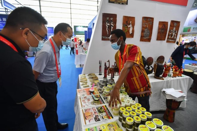 African products on display at a trade expo in China in 2021. Photo: Xinhua alt=African products on display at a trade expo in China in 2021. Photo: Xinhua