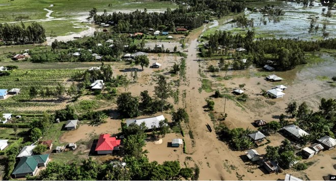 An aerial view shows a flooded area in Ombaka Village, Kisumu, Kenya, April 17, 2024.