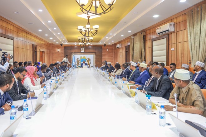 Somali Cabinet convenes on August 6, 2024, to approve the appointment of 14 new diplomats, including 12 ambassadors and 2 consuls general, to strengthen the country's international relations. CREDIT/ OPM
