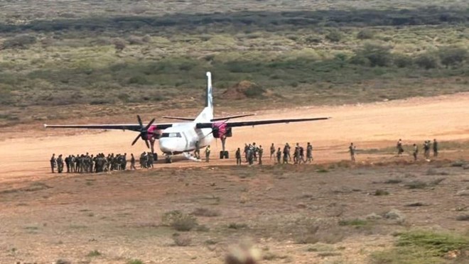 Federal Government of Somalia (FGS) troops disembark at Ras Kamboni airport amidst heightened tensions with Jubbaland forces over disputed elections and regional autonomy
