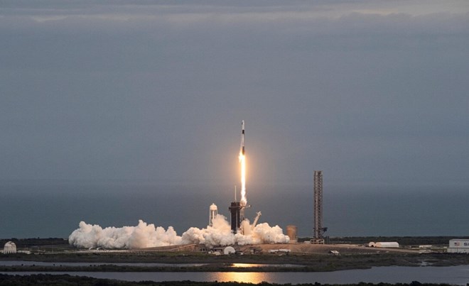 A SpaceX Falcon 9 rocket with its Crew Dragon capsule launches from pad LC-39A during Axiom Mission Three (Ax-3) at the Kennedy Space Center, in Cape Canaveral, Florida, on January 18, 2024. (Photo by CHANDAN KHANNA / AFP)
