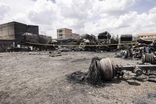 Fifty-two others are being treated in different health facilities.A lorry laden with gas cylinders blew up just before midnight in a densely populated area of the city, causing several fires.