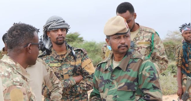 Mogadishu (HOL) — General Dayah Abdi Abdulle, commander of the Somali National Army's ground forces, inspected areas in the Galgaduud region recently liberated from the Al-Shabaab group on Wednesday.