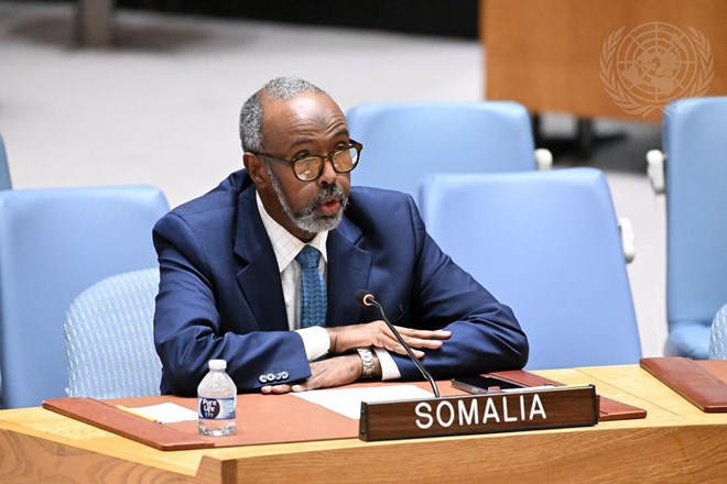Abukar Dahir Osman, Permanent Representative of the Federal Republic of Somalia to the UN, addresses the Security Council meeting on the situation in Somalia. UN Photo/Evan Schneider