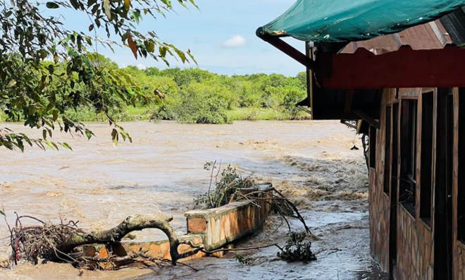 View of a swollen river near a safari lodge following heavy rainfall in the Talek region, of the Maasai Mara National Reserve in Narok County, Kenya May 1, 2024. REUTERS/David Macharia Purchase Licensing Rights