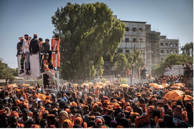 Supporters of the main opposition party Waddani attend a final campaign rally in Hargeisa on November 8, 2024. (AFP)
